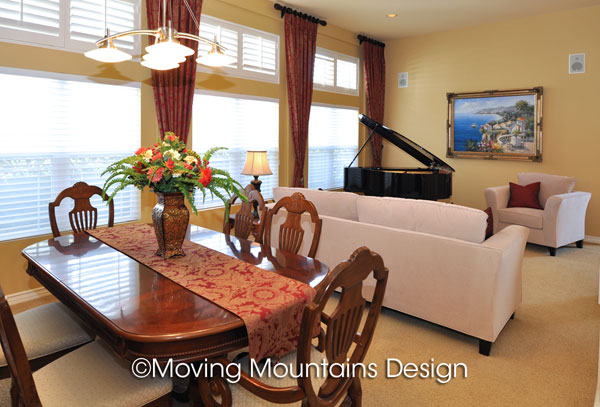 This is an owner occupied home staging, meaning the homeowners are living in the home while it’s on the market. We used some of their existing furniture, mixed with staging furniture, artwork and accessories. Sometimes we are able to use some or all of the homeowner’s own furniture. In this case the furniture was in excellent condition, in proportion to the rooms and a suitable style for accentuating the best features of the home. Altadena home staging is one of our specialties.