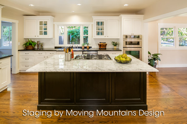 This week Pasadena home staging company, Moving Mountains Design, staged a beautifully updated and creatively re-imagined Pasadena Craftsman home in the Historic Highlands. This home underwent an extensive renovation and modernization by one of the top real estate investor companies in Los Angeles. The home has 4 bedrooms (2 are en suite) and 3 bathrooms. The master bedroom has 2 walk-in closets and a bonus room with separate entrance that could be used as a home office, yoga studio, artist’s studio, nursery, or? We love staging beautiful Pasadena homes with brand new bathrooms and a new kitchen with huge center island with a top-of-the-line down-draft cook-top.